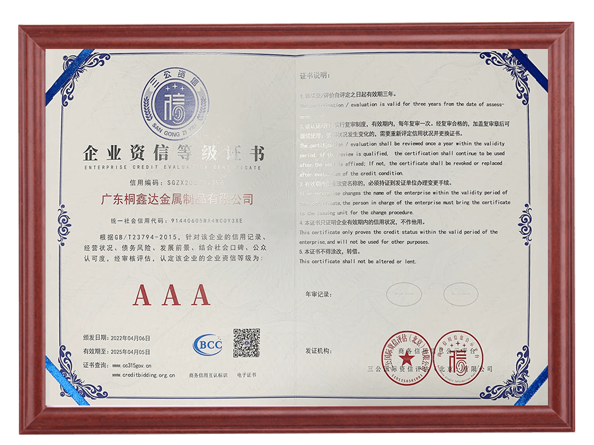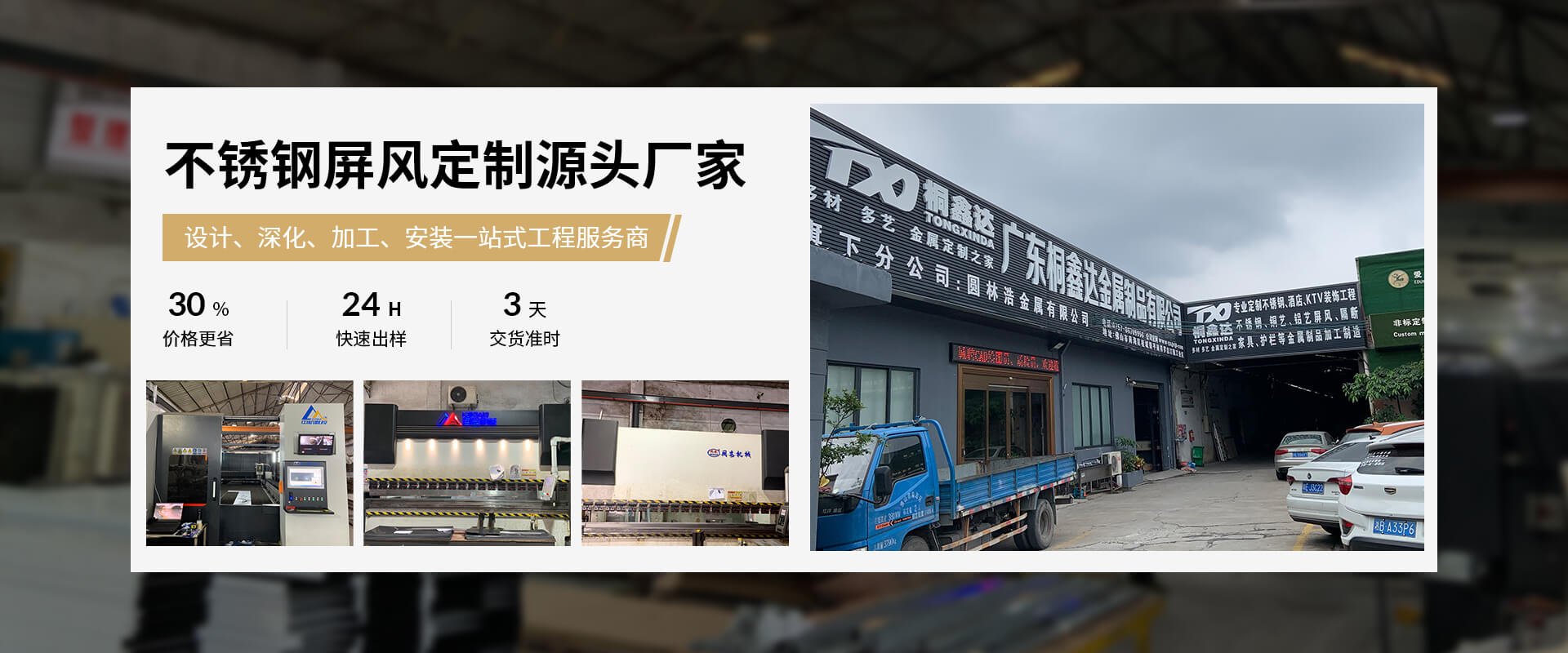 廣東桐鑫達(dá)金屬制品有限公司成立于2014年,是一家專注于高檔酒店/夜總會(huì)/高級(jí)場(chǎng)所金屬制品設(shè)計(jì)、生產(chǎn)及銷售安裝工程的企業(yè)。公司自成立以來(lái),始終堅(jiān)持以“質(zhì)量求生存,誠(chéng)信求發(fā)展”為宗旨,不斷滿足客戶對(duì)高端品質(zhì)的需求,努力成為國(guó)內(nèi)行業(yè)的佼佼者。